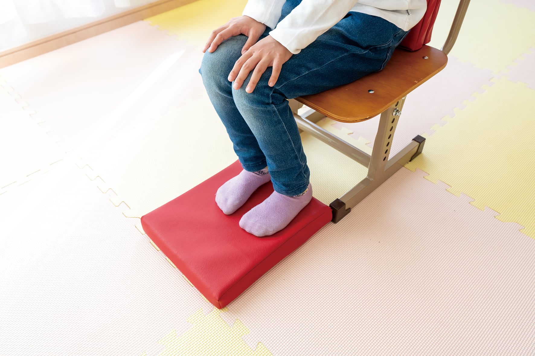 ・座位姿勢時に椅子のサイズが合わず、足が浮いてしまうことを防ぎます